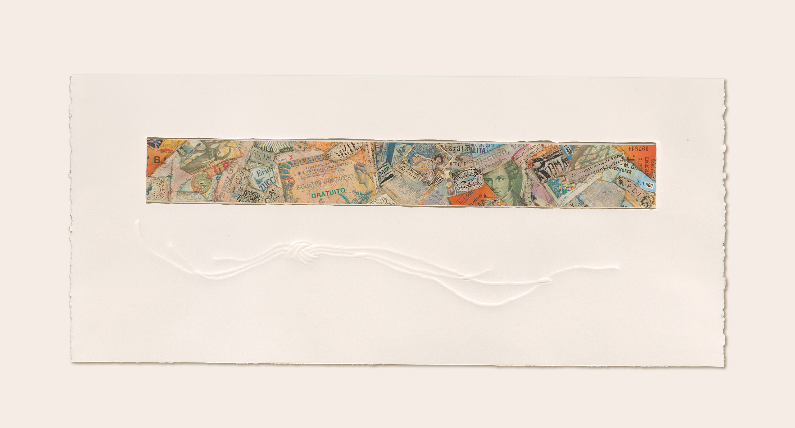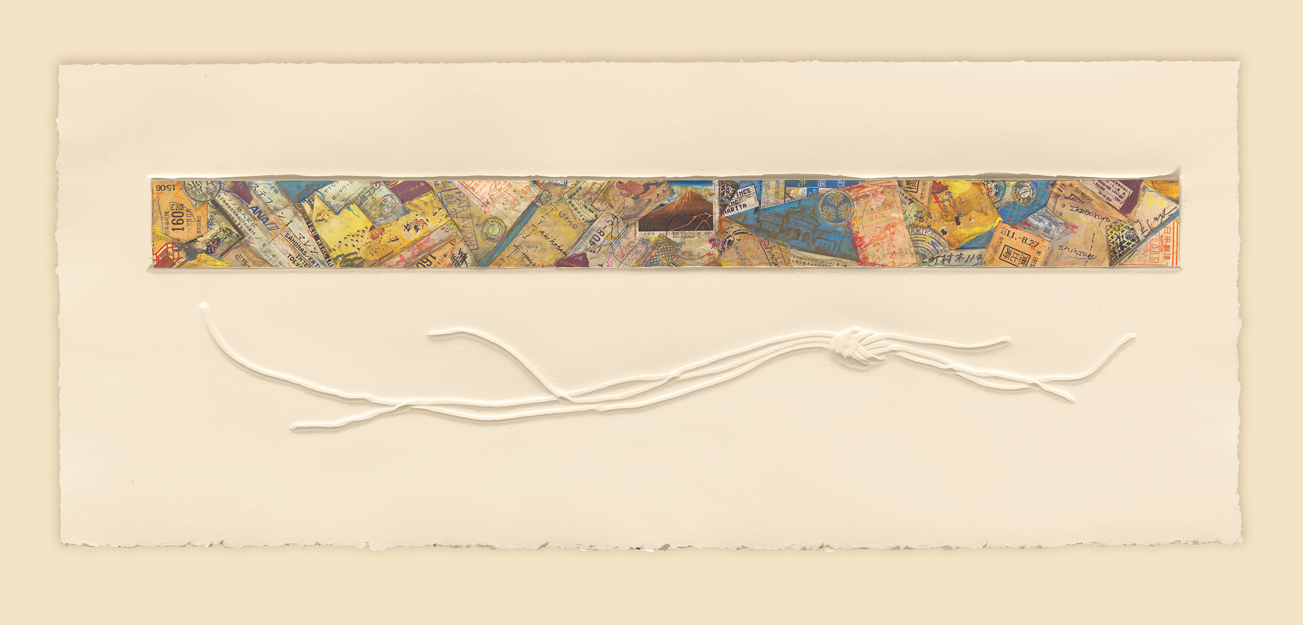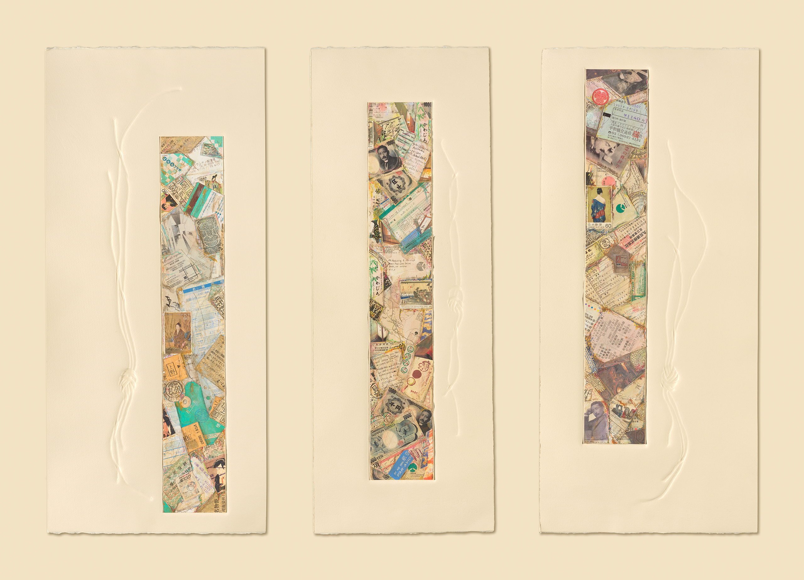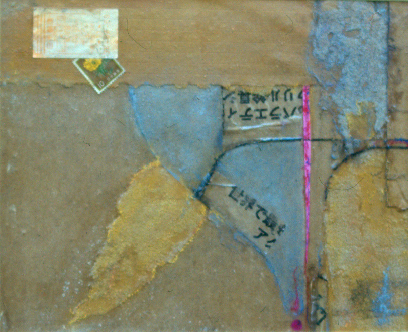 Ink, Pastel, Watercolor Pencil, and Found Items on Found Paper