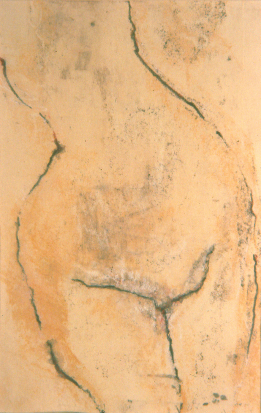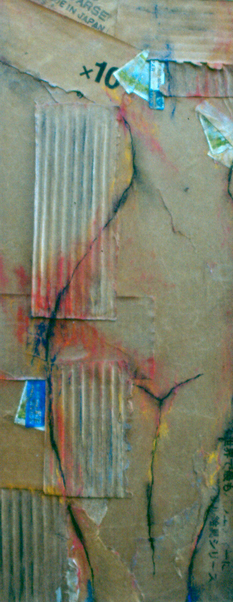 Ink, Pastel, Watercolor Pencil, and Currogated Cardboard on Found Paper